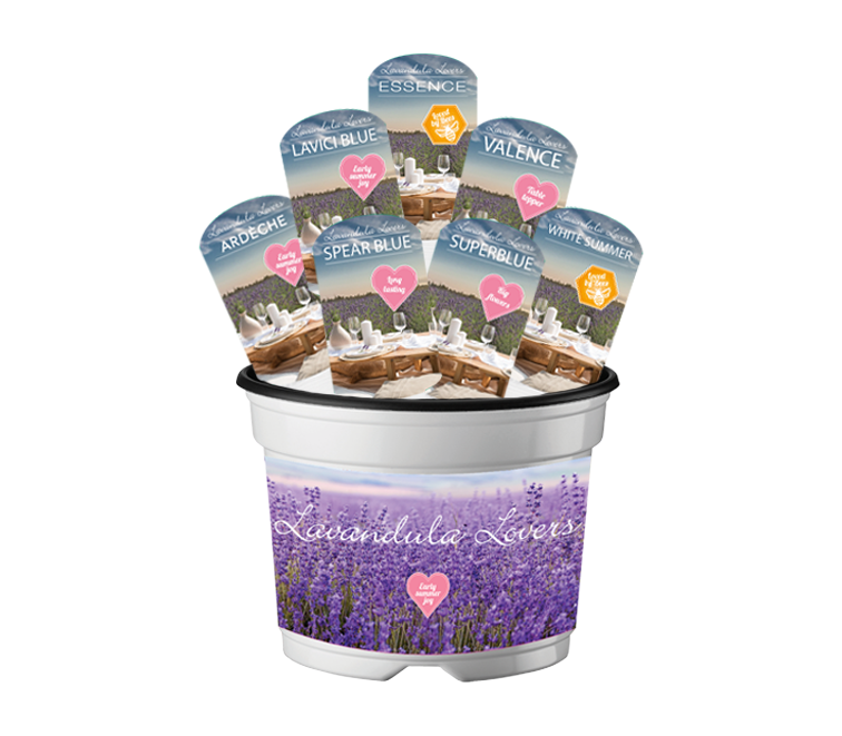 Met ons Lavandula assortiment bieden we u van april tot september een brede aanwezigheid op de markt, met diverse bloeiende Lavandula's. Binnen deze tijdlijn is uw hele seizoen gedekt met de 4 bestsellers: Essence®, Ardéche®, Spear Blue en Valence. In potmaat 10,5-19 cm en geschikt voor bloei in het eerste en tweede teeltjaar. Met een breed scala aan diversiteit zal Lavandula Lovers altijd bij u passen. Uw klanten zullen er dol op zijn eveneens als de bijen en vlinders, vanwege de overvloed aan stuifmeel en nectar.